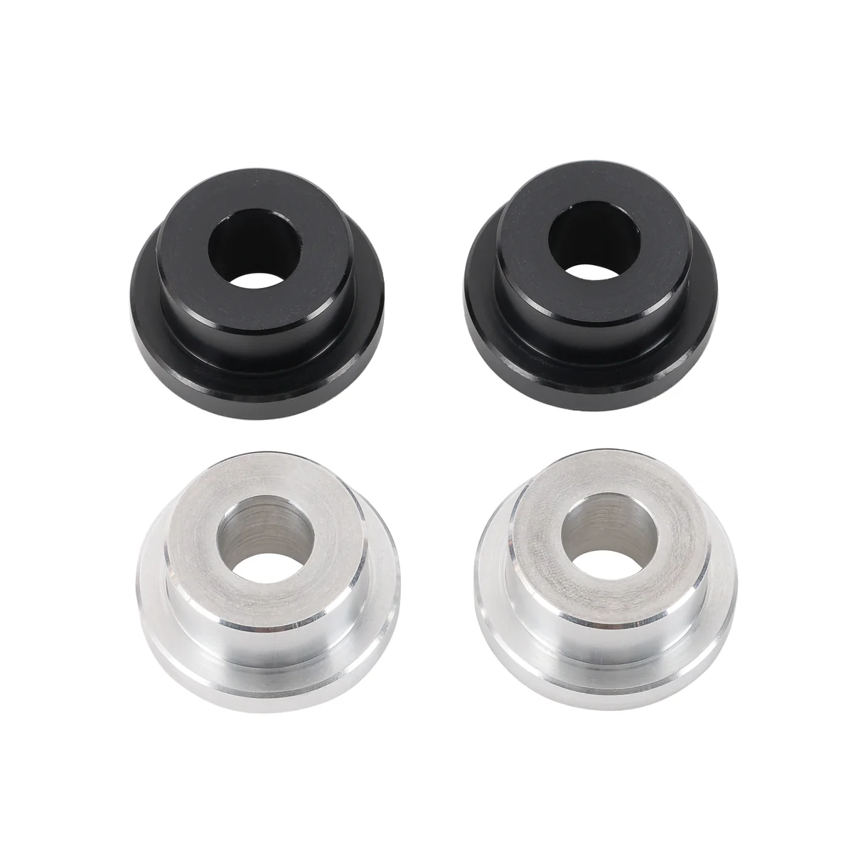 Eliminate the slop of your risers with our solid bushing kit. This kit includes two black bushing, & two silver bushing. Allowing you to choose which color you want to see whenever you look down.